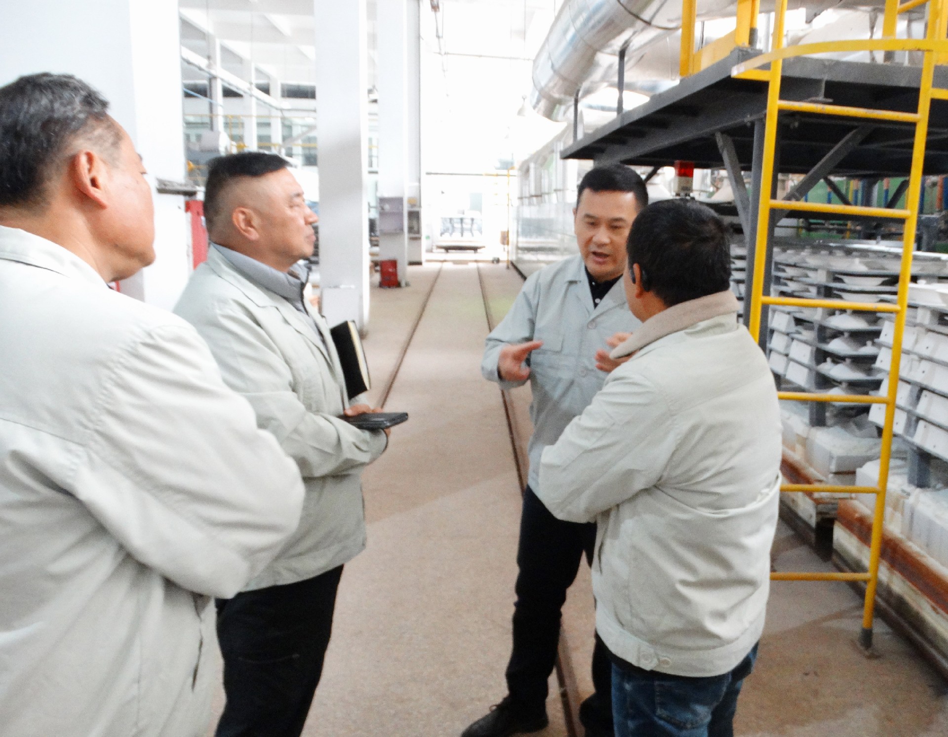 為深入學習宣傳貫徹習近平總書記考察江西重要講話精神,落實好省委、市委學習推廣“四下基層”的有關要求,進一步推動集團主題教育走深走實。11月27日,景陶集團黨委書記、董事長鄧景揚深入掛點聯系點紅葉公司一廠開展“四下基層”活動。集團黨委委員、工會主席鄧必春、組織人力資源部部長薛景玉等人隨同,紅葉公司總經理章彧、紅葉公司黨總支專職副書記李俊、紅葉公司副總經理邱鎮勇、一廠副廠長劉靈敏陪同。